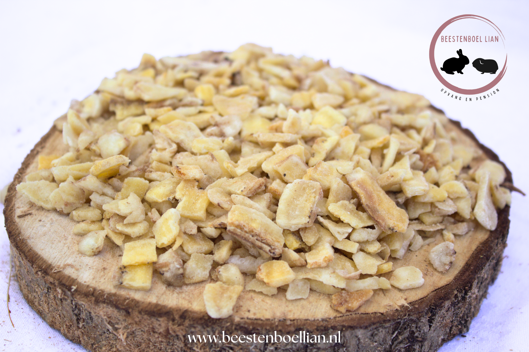Bananenchips is een gezonde en makkelijke snack voor jouw konijn en knaagdier met een heerlijke zoete smaak en positieve werking op de gezondheid!