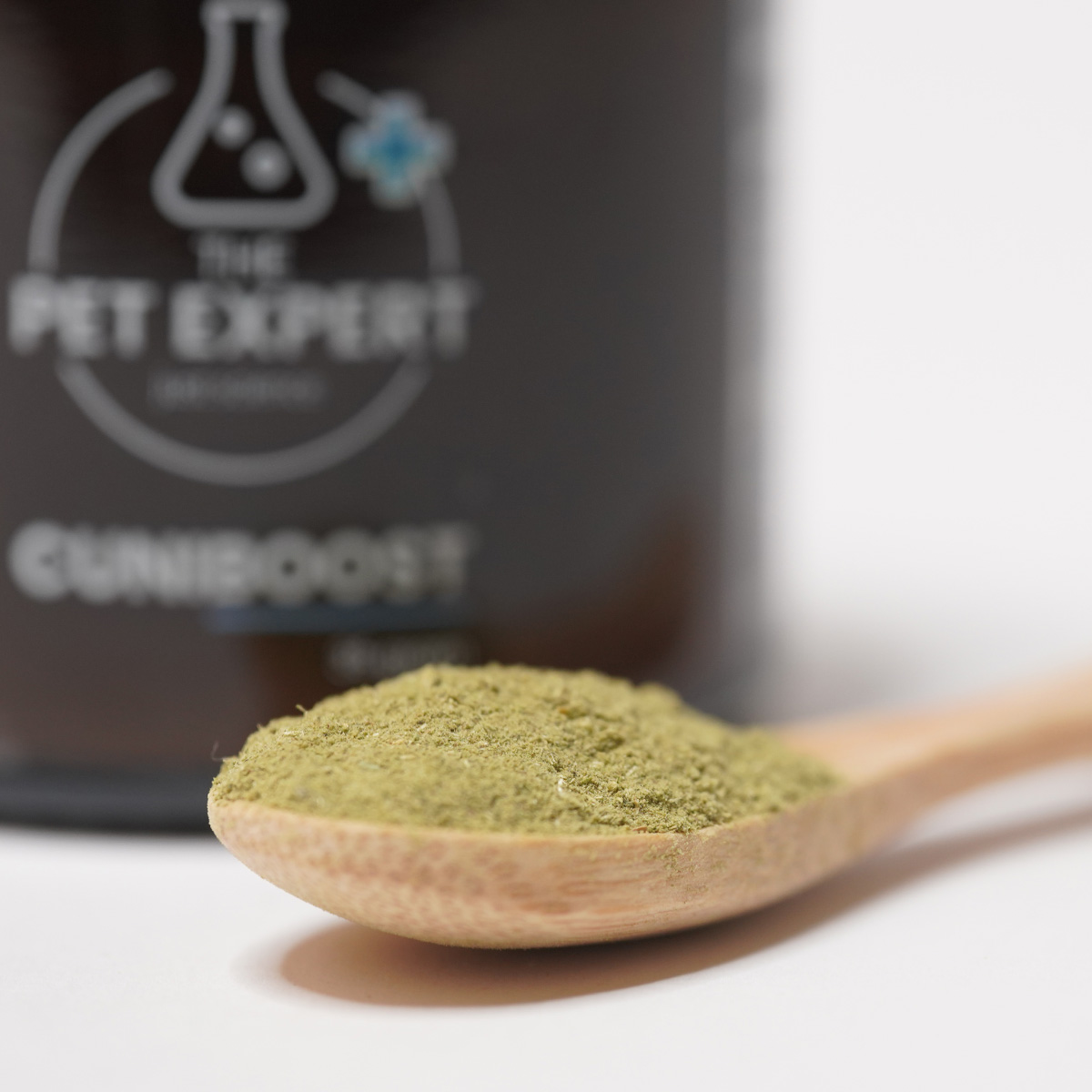 CuniBoost is een voedzaam, vezelrijk supplement in poedervorm dat konijnen ondersteunt wanneer ze tijdelijk minder of niet zelfstandig eten. Het is speciaal ontwikkeld om de eetlust te stimuleren, extra energie te geven en het herstel te bevorderen tijdens ziekte, na operaties, bij gebitsproblemen of bij periodes van verminderde eetlust.