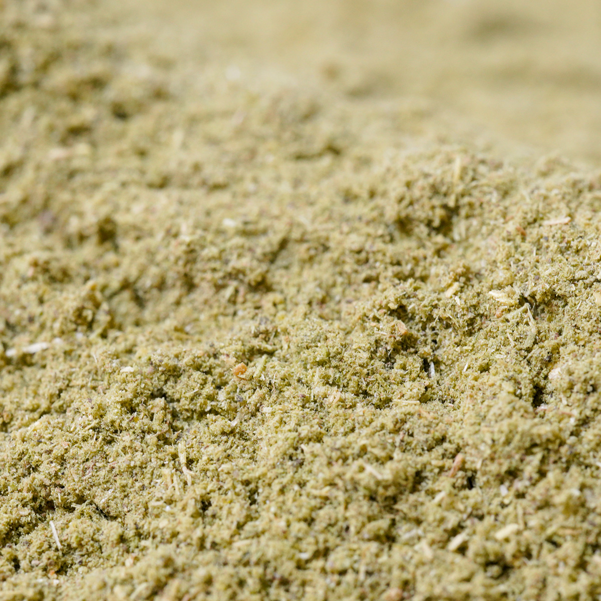 Tarwegras, luzerne, frambozenblad, weegbree, haversteeltjes, erwtenvlokken, chia.